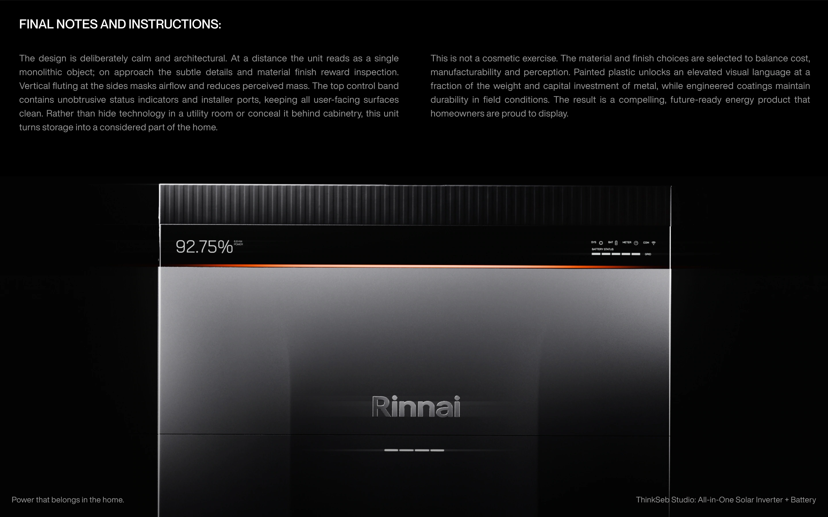 Rinnai Australia home solar energy product design.